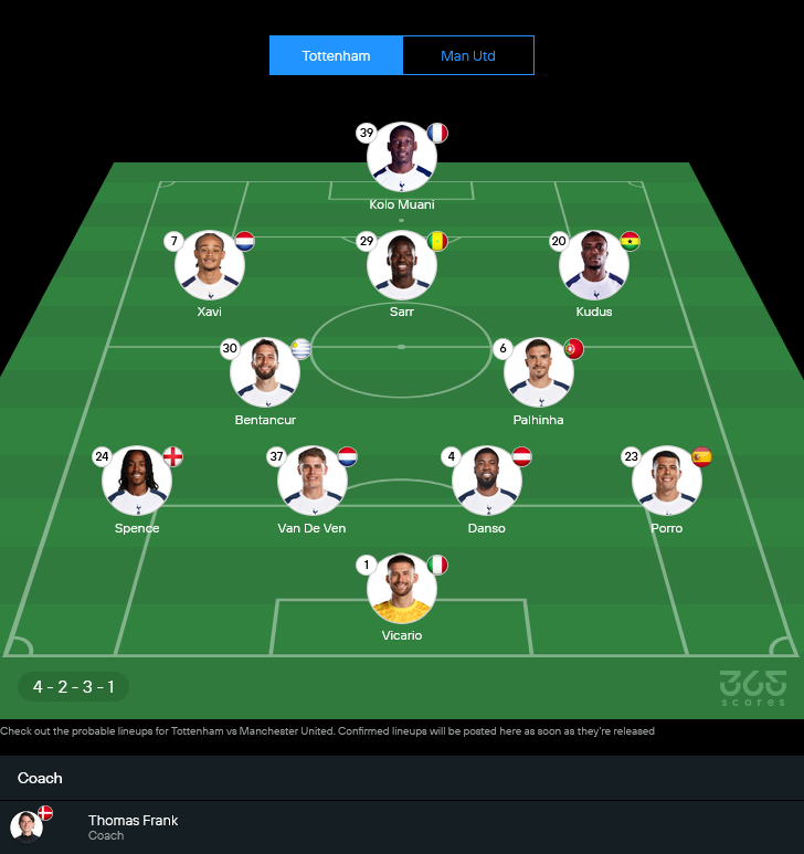 มู้ดการเล่น: “ปีศาจแดงมั่นใจจัดเต็ม กองกลางคุมจังหวะ เกมรุกพร้อมเพรสสูง กดดันแนวรับสเปอร์สแบบไม่เปิดโอกาสหายใจ”