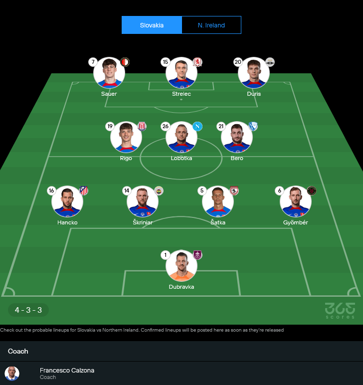 สโลวาเกียของกุนซือ Francesco Calzona ได้ข่าวดีใหญ่เมื่อ Lobotka กลับมาฟิตเต็มสูบ พร้อมยืนกลางคุมเกม ด้านตัวเจ็บมีเพียง Ondrej Duda ที่ติดโทษแบน