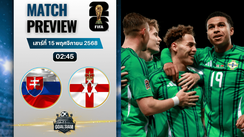 สโลวาเกียกำลังเครื่องกำลังติด ฟอร์มในรังเหย้าโหดจัด ส่วนไอร์แลนด์เหนือแม้จะรัดกุมแต่เกมเยือนยังไม่นิ่ง แถมสภาพทีมไม่สมบูรณ์ งานนี้จึงเป็นแมตช์ที่มีทั้งมิติแท็คติก การดวลตัวต่อตัว และราคาไหลที่น่าจับตา