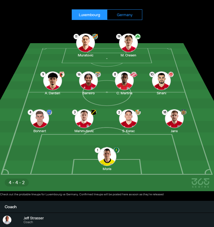 11 ตัวจริงลักเซมเบิร์ก (คาดการณ์) พร้อมเรตคะแนน GOALSIAM
