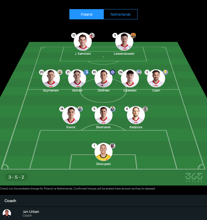 อย่างไรก็ตาม โปแลนด์ยังมีแกนหลักจากรูปในสนามครบถ้วน ทั้งแผงหลังที่ยืนสามเซ็นเตอร์บวกวิงแบ็ก ทำให้โครงสร้างเกมรับยังแน่น ระบบหลักคาดว่ามาแบบ 3-5-2 เน้นรับแน่นแล้วโต้กลับด้วยความคมของเลวานดอฟสกี้