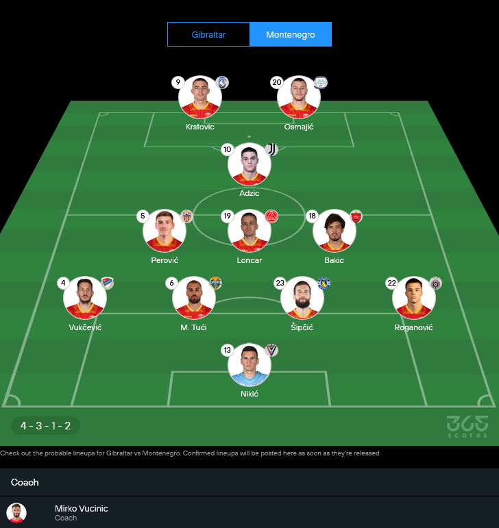 มอนเตเนโกรแม้ช่วงหลังเสียความมั่นใจไปเยอะ แต่เกมล่าสุดที่ชนะลิกเตนสไตน์ทำให้บรรยากาศในทีมดีขึ้น เหมือนถอนลมหายใจโล่งออกแล้ว ส่วนยิบรอลตาร์แม้จะเล่นในบ้าน แต่เมื่อดูจากสถิติการเสียประตูเฉลี่ยเกือบ 3 ลูกต่อเกม การรับมือแนวรุกสองหอกอย่าง คริสโตวิช กับ ออสมายิช น่าจะเหนื่อยทั้งคืน