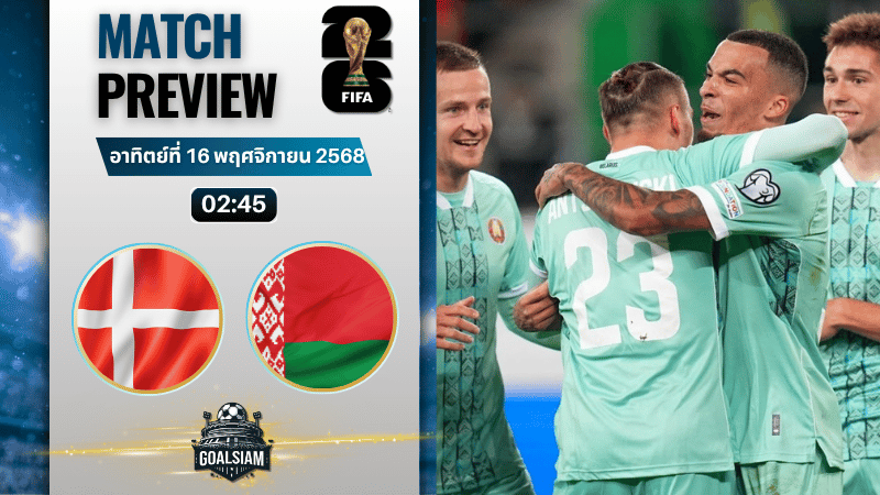คืนนี้โฟกัสไปที่ศึก ฟุตบอลโลก 2026 รอบคัดเลือก โซนยุโรป กลุ่มซี จ่าฝูงอย่าง เดนมาร์ก เปิดบ้านเจอเบอร์บ๊วยอย่าง เบลารุส คู่ที่น่าจะเป็นของตายบนโพย แต่เรื่องสกอร์ขาดไม่ขาดนี่แหละที่สายเดิมพันต้องคิดกันยาวๆ เพราะเลกแรกเดนมาร์กถล่มมาแล้ว 6 ลูก แถมช่วงนี้ฟอร์มโคนมกำลังโคตรเข้ม ขึงเกมรุกแบบดาหน้าบุกทั้งฝั่งซ้ายขวา เหมาะมากสำหรับสายหาม วิเคราะห์บอล GOALSIAM เอาไปต่อยอด