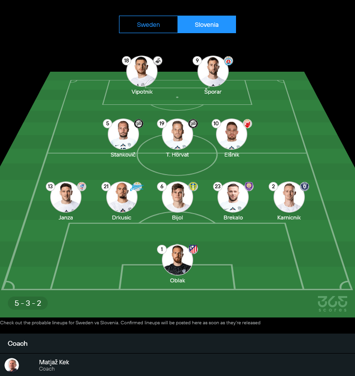 ฝั่งสโลวีเนีย ขาดตัวทีเด็ดแบบ เซสโก้ เกมรุกลดความอันตรายไปครึ่งหนึ่ง แถมต้องมาเยือนอีก โอกาสแพ้มีไม่น้อย แต่เป็นบอลยันเหนียว อาจไม่โดนยิงขาด