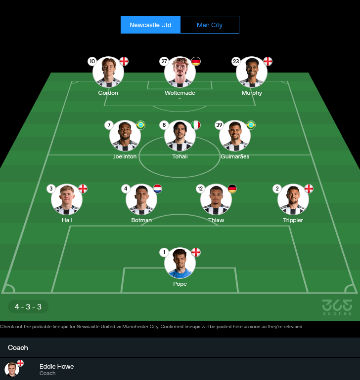 ฝั่งเจ้าถิ่นของ เอ็ดดี้ ฮาว สภาพทีมไม่สมบูรณ์เท่าไร มีตัวเดี้ยงยาวเพียบ ไล่ตั้งแต่ วาเลนติโน่ ลิฟราเมนโต้, แฮร์ริสัน แอชบี้, วิลเลียม โอซูล่า รวมถึง โยแอน วิสซ่า กับ โชเอลินตอน ที่ยังต้องเช็กอาการ ขณะที่ แดน เบิร์น โดนโทษแบนจากใบแดงเกมพ่ายเบรนท์ฟอร์ด ส่วน นิค โป๊ป ได้ลุ้นคัมแบ็กกลับมาเฝ้าเสา ตามรายชื่อล่าสุดมีชื่อพร้อมยืนตัวจริงอีกครั้ง