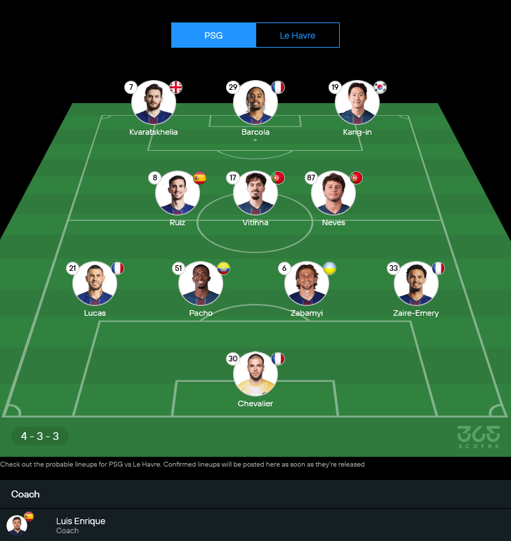 เอ็นริเก้เตรียมจัดระบบ 4-3-3 เดินหน้าใส่ตามสไตล์ เน้นต่อบอลสั้นกลางสนามแล้วให้ตัวริมเส้นลากตัดเข้ายิง ในมุมมองเชิง วิเคราะห์บอล เกมนี้ถ้าเปแอสเชออกนำเร็ว มีโอกาสไหลขาด เพราะเลอ อาฟร์ไม่ใช่ทีมถนัดไล่ตามสกอร์