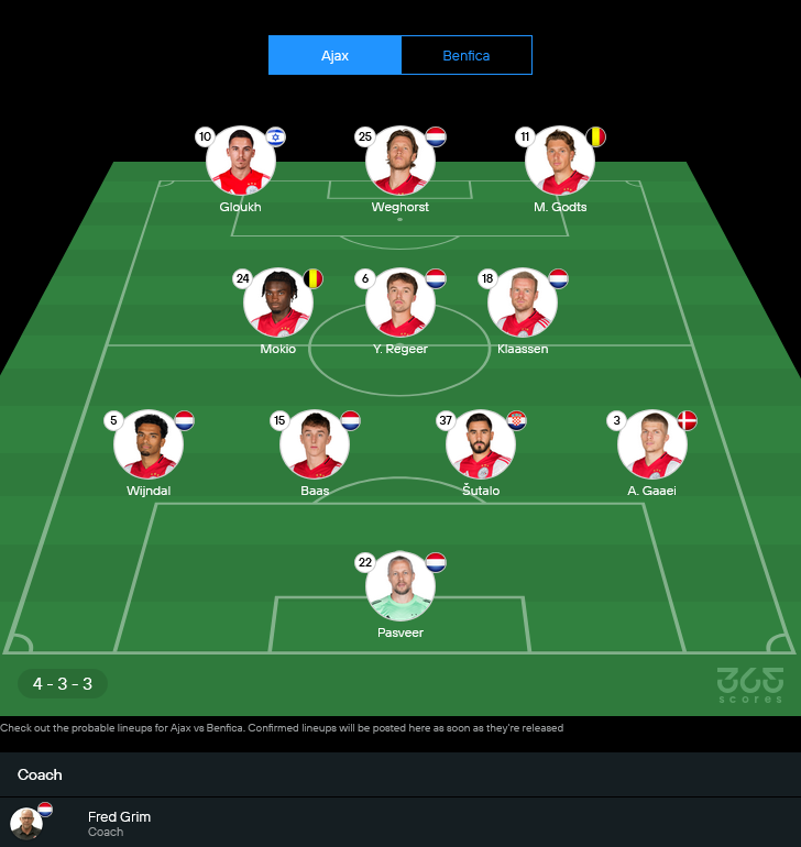 คาดการณ์ 11 ตัวจริง อาแจกซ์ (4-3-3)