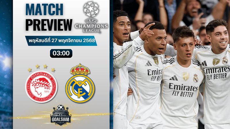ราชันบุกแดนเทพเจ้าทะเล! โอลิมเปียกอสพร้อมล่าแต้มใส่เรอัล มาดริดที่ยังไม่เข้าฝัก