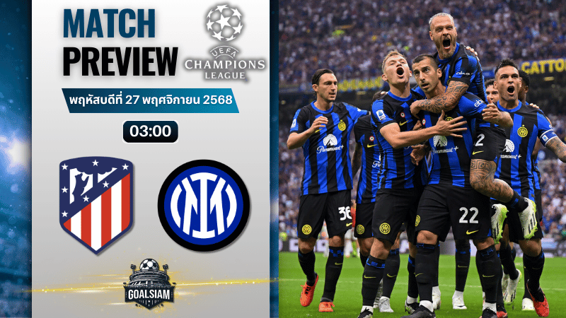คู่นี้บอกเลยสายลงทุนต้องไม่พลาด ศึก ยูฟ่าแชมเปียนส์ลีก รอบลีก สเตจ เกมใหญ่ที่รสชาติบอลมันตั้งแต่ชื่อทีมแล้ว เจ้าถิ่นอย่าง แอตเลติโก มาดริด ภายใต้ดิเอโก้ ซิเมโอเน่ กำลังวิ่งฉิว ชนะรัวๆ ทั้งลีกทั้งยุโรป แถมสถิติเล่นในบ้านโหดจัด แทบไม่มีใครกล้าบุกมาแลกหมัดง่ายๆ ส่วนฝั่งผู้มาเยือนอย่าง อินเตอร์ มิลาน ของกุนซือคริสเตียน คิวู เพิ่งสะดุดแพ้ดาร์บี้ให้เอซี มิลาน ฟอร์มในลีกยังดีอยู่ก็จริง แต่จังหวะที่ต้องออกมาเยือนสนามดุๆ แบบเมโทรโปลิตาโน่ บอกเลยไม่ใช่งานสบาย