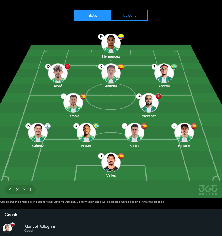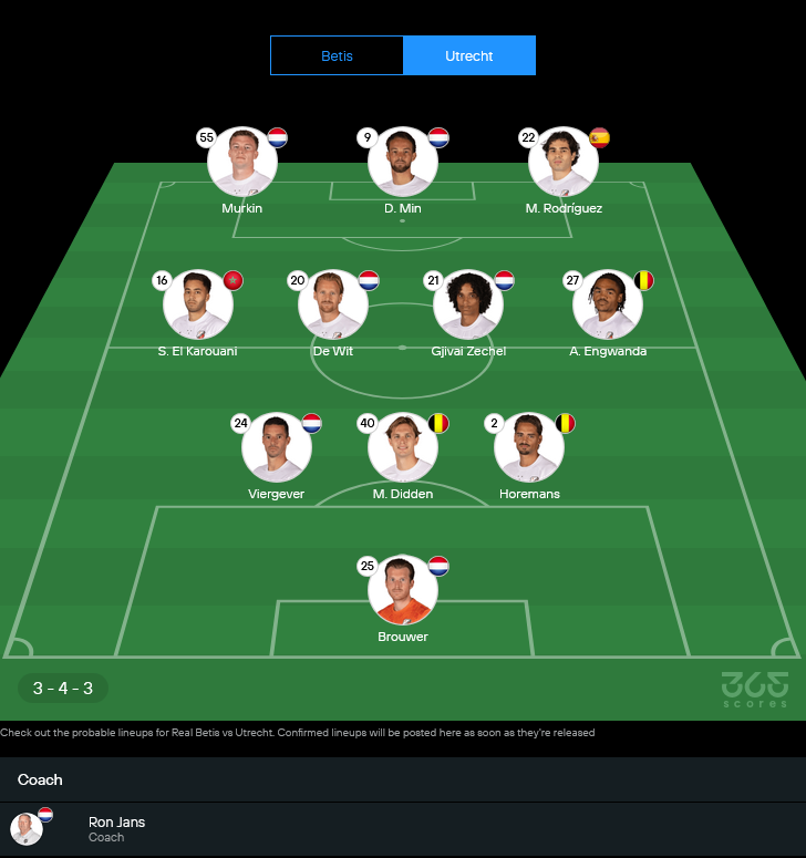 เกมนี้เลยเป็นเหมือนการลองเชิงกันครั้งแรก ใครอ่านเกมเร็วกว่า แก้แท็กติกได้ไวกว่า มีโอกาสพลิกเกมเข้าทางทันที โดยเฉพาะจังหวะต่อบอลของเบติสกับการยืนโซน 3-4-3 ของอูเทร็คท์ว่าจะรับมือไหวแค่ไหน