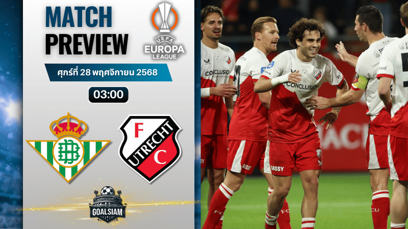คืนนี้แฟนบอลสายลาลีกาและเอเรดิวิซี่มีนัดดูบอลยุโรปแบบดุเดือด เมื่อ เรอัล เบติส ทีมอันดับบนของกลุ่ม เปิดบ้านชน อูเทร็คท์ จากฮอลแลนด์ ในรอบลีกสเตจศึก ยูโรป้า ลีก เกมนี้ภาพรวมทุกอย่างไหลเข้าทางเจ้าบ้านชัดเจน ทั้งฟอร์มช่วงหลัง แรงเชียร์ในรัง รวมถึงสภาพทีมที่จัดตัวใหญ่ใส่เต็ม ขณะที่ทีมเยือนต้องยกพลมาสเปนแบบมีตัวเจ็บ ตัวล้า แถมเกมเยือนช่วงหลังไปไม่ค่อยรอด มองมุมไหนก็สนุกแน่นอนสำหรับสายลุ้นผลและสายหา ทีเด็ดบอล ไว้ใส่บิล