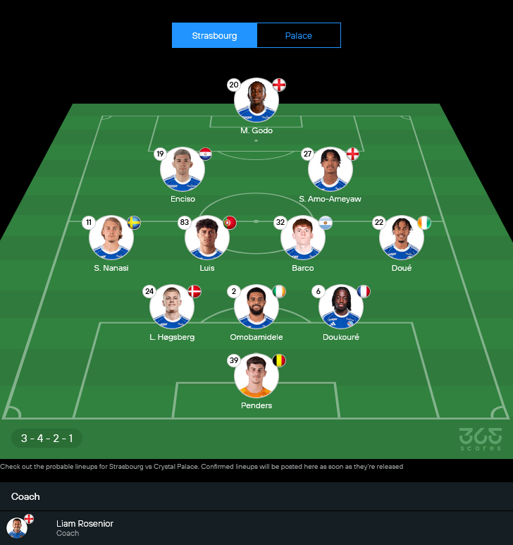 11 ตัวจริงสตราส์บูร์ก (คาดการณ์ พร้อมเรตคะแนนในสายตา GOALSIAM)