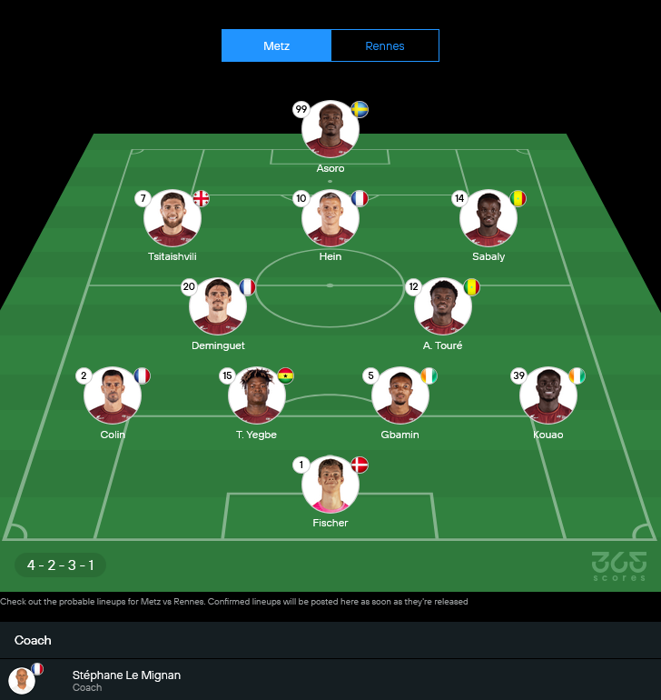 เม็ตซ์ช่วงหลังฟอร์มแกว่งเป็นช่วงๆ ชนะต่อเนื่องสามเกมสวยๆ แต่ดันไปโดน ลีลล์ ถล่ม 6 1 ก่อนจะบุกไปพ่าย แบรสต์ 3 2 แบบเจ็บใจเพราะเสียจุดโทษท้ายเกม จุดเด่นคือเล่นในบ้านเหนียวขึ้นเยอะ เก็บคลีนชีตได้บ่อย แต่พอออกนอกบ้านหรือเกมเปิดแลกทีไร แนวรับรั่วให้เห็นประจำ