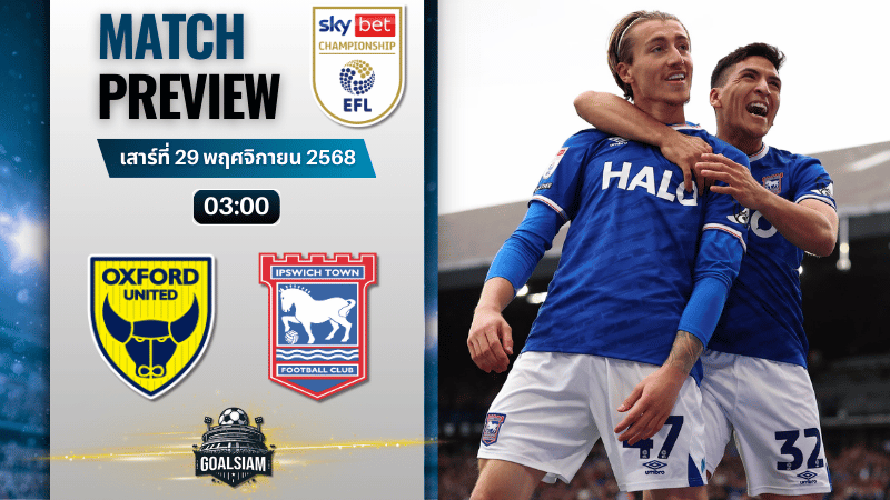 ช่วงหลังคู่นี้เจอกันทีไร เกมออกมาสูสีตลอด อ็อกซ์ฟอร์ดอาจจะชื่อชั้นเป็นรอง แต่สถิติการพบกัน 8 ครั้งหลังสุดพวกเขาแพ้ให้กับอิปสวิชแค่เกมเดียว และเพิ่งชนะได้สดๆ ร้อนๆ ในปี 2023 ยิ่งเล่นที่คาสซัม สเตเดี้ยม มักกลายเป็นเกมอึดอัดที่ทีมเยือนเจาะยากประจำ ขณะที่อิปสวิชยุคใหม่กำลังยกระดับตัวเองเป็นทีมลุ้นเลื่อนชั้น ทำให้เกมนี้ออกอารมณ์ “ทีมหนีตายปะทะทีมลุ้นเพลย์ออฟ” แรงกดดันมีทั้งสองฝั่ง