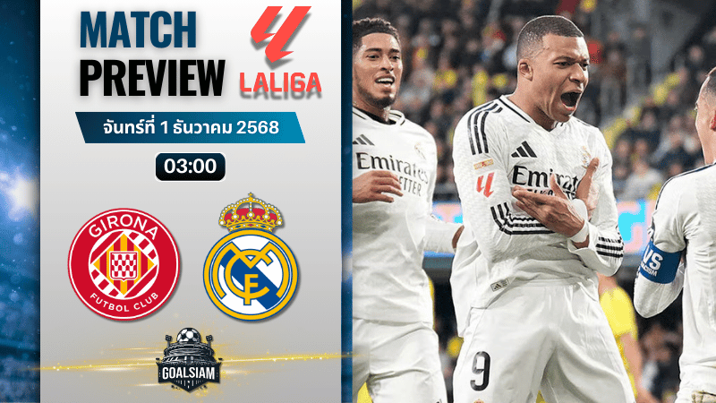 GOALSIAM มองภาพรวมแล้วคุณภาพฝั่งราชันยังข่มชัด เกมนี้น่าจะบุกมาคุมเกมได้ตั้งแต่ต้น แม้กิโรน่าอาจมีลูกฮึดจากเสียงเชียร์ในบ้านพอทวงคืนได้หนึ่งเม็ด แต่สุดท้ายประสบการณ์และความคมของสามแนวรุกมาดริดจะทำงานเต็มที่ จบสกอร์แบบยิงกันมันส์มือ ทีมเยือนเก็บสามแต้มกลับมาดริดได้ตามเป้า