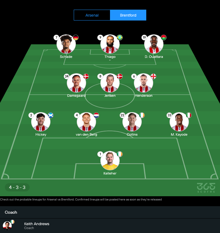 เบรนท์ฟอร์ด (4-3-3) คาดการณ์ 11 ตัวจริงพร้อมเรตคะแนนโดยประมาณ