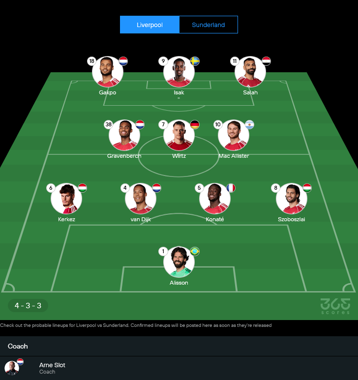 ลิเวอร์พูลใส่เต็มหน้า Anfield ล่าแต้มลุ้นท็อปโฟร์ ซันเดอร์แลนด์บุกมาแบบไม่กลัวตาย
