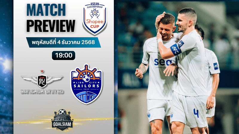 เกมระดับภูมิภาคที่แฟนบอลบ้านเราต้องจับตา ทรู แบงค็อก ยูไนเต็ด เปิดรังต้อนรับ Lion City Sailors จากสิงคโปร์ ศึกนี้ไม่ใช่แค่เตะให้ครบโปรแกรม แต่คือแมตช์วัดดีกรีใครจะยืนหนึ่งอาเซียนจริง ๆ ฝั่งบียูมีดีกรีทีมใหญ่ไทยลีก ขุมกำลังแน่นทุกโซน ส่วนไลออน ซิตี้ เซลเลอร์ส ขึ้นชื่อเรื่องเกมรุกดุดัน ยิงกระจายเป็นงานถนัด ใครสายดูบอลชอบแนววัดแผงรุกชนแผงรับ บอกเลยแมตช์นี้โคตรโดนในมุม ทีเด็ดบอล เลย