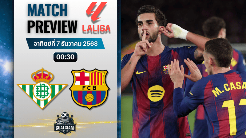 ลาลิกา เกมนี้บอกเลยสายลงทุนห้ามกดปิดจอ เพราะเป็นการเจอกันของสองทีมบอลรุกจัดอย่าง เรอัล เบติส กับ บาร์เซโลน่า ที่สถิติเจอกันทีไรสกอร์ไหลเกือบทุกนัด แถมสถานการณ์บนตารางก็มีแรงจูงใจเต็มแม็ก เจ้าบ้านเบติสกำลังล่าแต้มไล่บี้โซนท็อปโฟร์ ส่วนบาร์ซ่าจ่าฝูงต้องชนะเพื่อกดดันทีมตามหลังต่อไป งานนี้ใครมองหา ทีเด็ดบอล ประจำคืนวันอาทิตย์ บอกเลยคู่นี้มีทั้งความมันส์และโอกาสทำกำไรครบสูตร