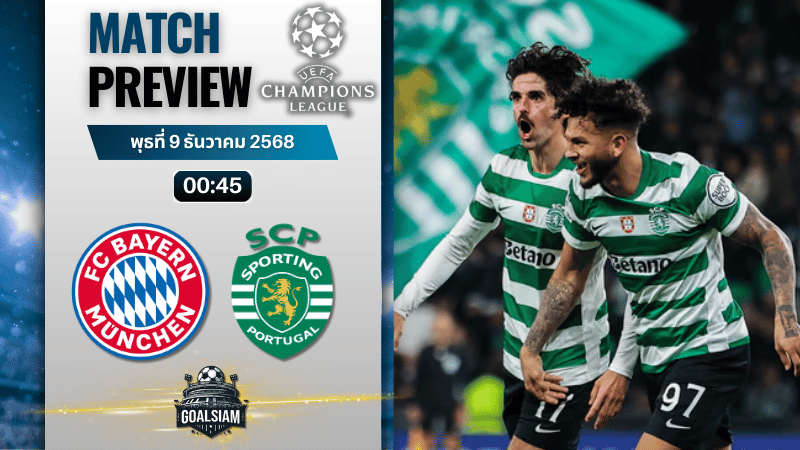 แต่จะมองข้ามสปอร์ติ้งไม่ได้เลย ทีมจากลิสบอนชุดนี้กำลังมั่นใจ ยิง 3 ลูกเป็นเรื่องปกติ แถมเกมรับมีสมาธิดีมาก ถ้าเขาผ่าน 20–25 นาทีแรกแบบไม่เสียประตูได้ เกมจะเริ่มสนุก เพราะบาเยิร์นต้องดันสูงขึ้นแล้วเปิดพื้นที่หลังแนวรับ