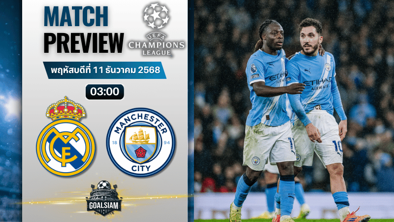 ถ้าเปิดกระดานดูทุกมุม ทั้งสถิติ H2H ฟอร์มล่าสุด และสภาพทีม GOALSIAM มองว่าเกมนี้มีโอกาสสูงที่จะออกมาสนุกแบบยิงกันยับอีกครั้ง เรอัล มาดริด ในบ้านยังน่าเกรงขามเสมอ โดยเฉพาะเวที UCL ที่เหมือนมีสวิตช์พิเศษกดแล้วทีมเปลี่ยนโหมด ส่วน แมนฯ ซิตี้ แม้เกมรุกดุไม่กลัวใคร แต่เกมรับนอกบ้านระยะหลังมีรูรั่วชัดเจน ยิ่งเจอคู่แข่งที่มีทั้ง วินิซิอุส และ เอ็มบัปเป้ วิ่งกดดันแนวรับตลอด 90 นาที ถ้าพลาดแม้เสี้ยววินาทีก็โดนลงโทษได้ทันที
