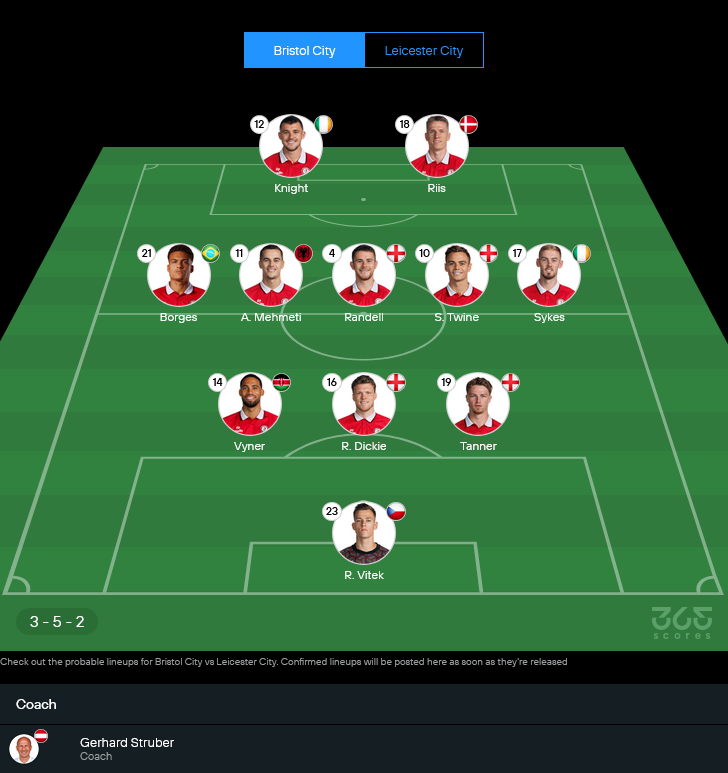คาดการณ์ 11 ตัวจริง บริสตอล ซิตี้ (3-5-2)