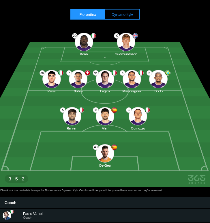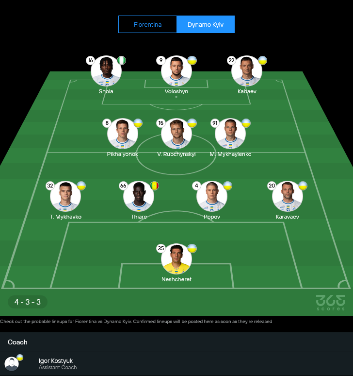 สกอร์ที่คาด: ฟิออเรนติน่า 2 0 ดินาโม เคียฟ