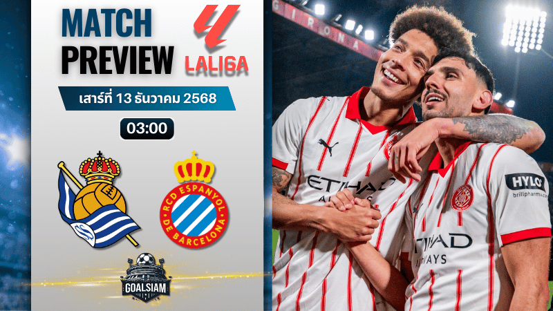 คู่นี้คือบอลหักด่านหนีโซนแดงของจริง เจ้าถิ่น เรอัล โซเซียดาด ซีซั่นนี้ฟอร์มแกว่งผิดจากภาพจำ แต่ยังพอมีทีเด็ดในบ้านอย่างเรอาเล่ อารีน่า ส่วนทีมเยือน คิโรน่า จากที่เคยพุ่งไปลุยยุโรป กลายเป็นต้องมานั่งลุ้นหนีตกชั้นเต็มตัว เกมนี้เลยไม่ใช่บอลธรรมดา แต่คือแมตช์ที่แต้มเดียวก็สำคัญแบบเลือดหยดสุดท้าย ใครกำลังมองหา ทีเด็ดบอล ยาวๆ ขอบอกว่าคู่นี้ห้ามกดผ่าน เพราะรูปเกมมีทั้งมุมมวยรองยันเสมอ มุมมวยต่อบี้ชนะ และมุมสกอร์ต่ำลุ้นเหงื่อออกปลายเกม