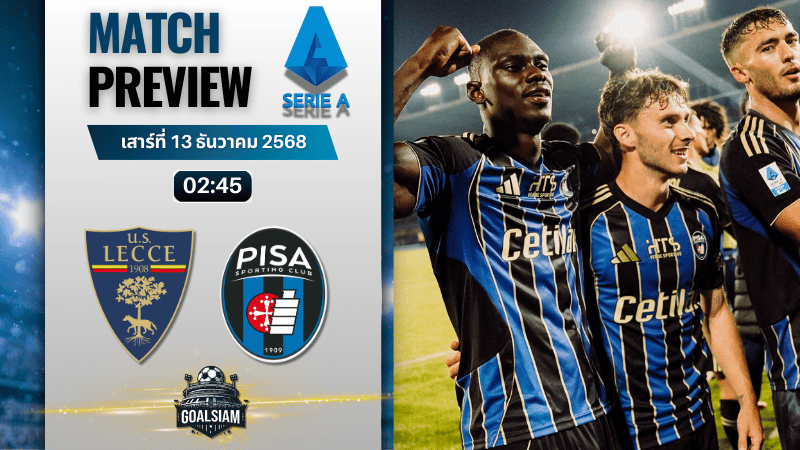 คู่นี้คือเกมชี้ชะตาโซนแดงแบบแท้จริง เลชเช่กับปิซ่าคะแนนไล่กันหายใจรดต้นคอ แถมฟอร์มช่วงหลังไม่หนีคำว่า “เป๋” กันทั้งคู่ ทำให้บรรดานักเสี่ยงโชคจับตามองกันยกใหญ่ เพราะถ้าอ่านเกมดีๆ มีลุ้นเก็บตังค์จากคู่นี้ได้สบาย GOALSIAM มองว่าใครชอบของดุๆ เกมเน้นผลแบบนี้คือของโปรด สถานการณ์บีบให้ต้องเล่นอย่างมีวินัยแต่ก็ต้องเสี่ยงบุกเพื่อสามแต้ม ที่สำคัญ ทีเด็ดบอล คู่นี้มีรายละเอียดให้แกะเยอะมาก ทั้งสถิติ H2H ฟอร์มหลัง และปัญหาตัวเจ็บตัวแบนที่ส่งผลหนักทั้งสองฝั่ง