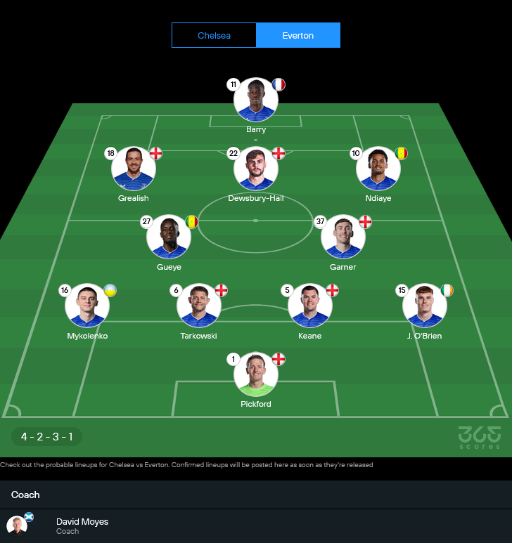 🟦 เอฟเวอร์ตัน (คาดว่า 4-2-3-1) ฟอร์มกำลังมา ได้ตัวกลับจากโทษแบน เกมนี้ยิ่งแน่น