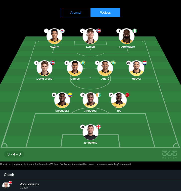 ฝั่ง ร็อบ เอ็ดเวิร์ดส์ สถานการณ์ไม่ต่างจากคนเดินขึ้นเขาแล้วโดนฝนสาด มีทั้งคนเจ็บและคนต้องเช็กอาการ โรดริโก้ โกเมส (ต้องลุ้น), ฌ็อง ริคแนร์ เบลล์การ์ด (ต้องลุ้น), ลาดิสลาฟ เครย์ซี่ (ต้องลุ้น) ส่วนที่ชัวร์ว่าไม่ไหวคือ ฮูโก้ บูเอโน่, มาร์แชลล์ มูเน็ตซี่ และ แดเนี่ยล เบนต์ลี่ย์ แบบนี้ทรงออกมาชัดว่าจะยืน 3-4-3 ตามคาด เน้นอัดแน่นพื้นที่ตรงกลางแล้วรอโต้กลับด้วยความเร็วของแนวรุก แต่ปัญหาคือเกมรับวูล์ฟส์ช่วงนี้หลุดง่าย พอเจอทีมที่ครองบอลแน่นๆ มีโอกาสโดนบี้จนเสียรูปทรง