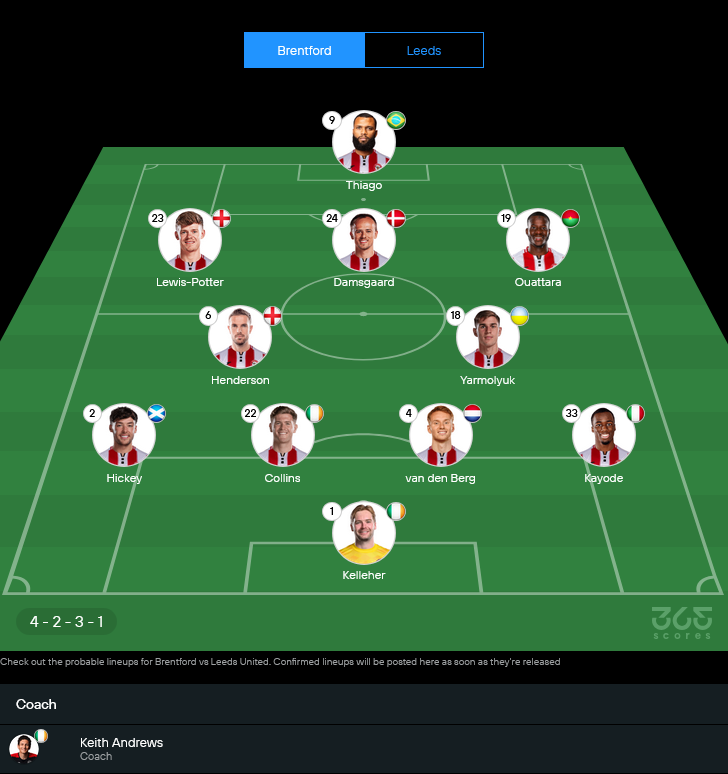 คีธ แอนดรูว์ส ยังต้องขาดเควิน ชาเด้ ที่ติดโทษแบน รวมถึงฟาบิโอ คาร์วัลโญ่, อันโตนี่ มิลัมโบ, โจชัว ดาซิลวา และ รีส์ เนลสัน ที่เดี้ยงยกแพ็ก แต่ตัวหลักชุดใหญ่ยังอยู่ครบ ระบบ 4-2-3-1 พร้อมเปิดหน้าแลกเหมือนเดิม