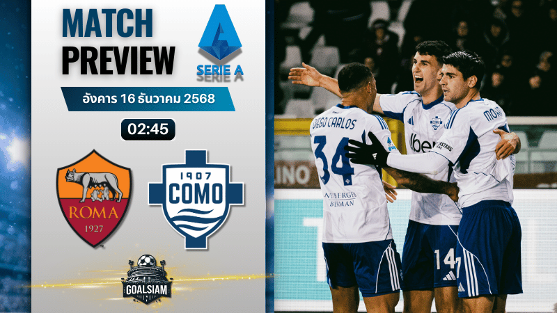 ค่ำคืนนี้คนรักบอลอิตาลีห้ามกะพริบตา เพราะนี่คือเกมที่ เอเอส โรม่า เปิดสังเวียนสตาดิโอ โอลิมปิโก้รับมือทีมม้ามืดอย่าง โคโม่ ที่ปีนี้ขึ้นมาจอยบนเวที เซเรีย อา แบบไม่เกรงหน้าใคร ฟอร์มหลังจัดว่าไม่ธรรมดา ยิงกระจายหลายแมตช์ แถมมีโค้ชอย่างเชสก์ ฟาเบรกาสคุมข้างสนาม ดูไปดูมาอารมณ์เหมือนบอลถ้วยมากกว่าบอลลีก เพราะต่างฝ่ายต่างมีของ เกมนี้ใครกำลังมองหามุมเล่น ทีเด็ดบอล แบบเน้นมันส์ เน้นลุ้นยาว เกมนี้ตอบโจทย์สุด ๆ