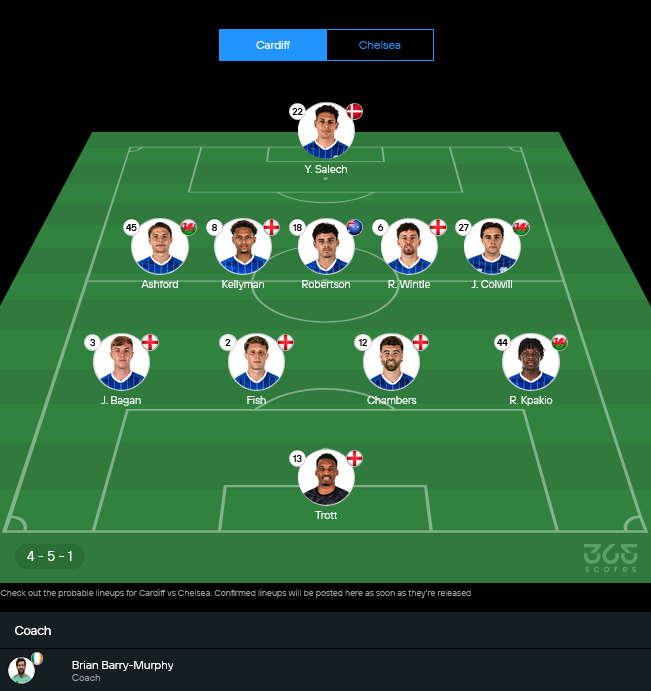 จากข้อมูลไลน์อัปที่โชว์ในสนามจำลอง คาดว่า 11 ตัวจริงของคาร์ดิฟฟ์จะออกมาประมาณนี้