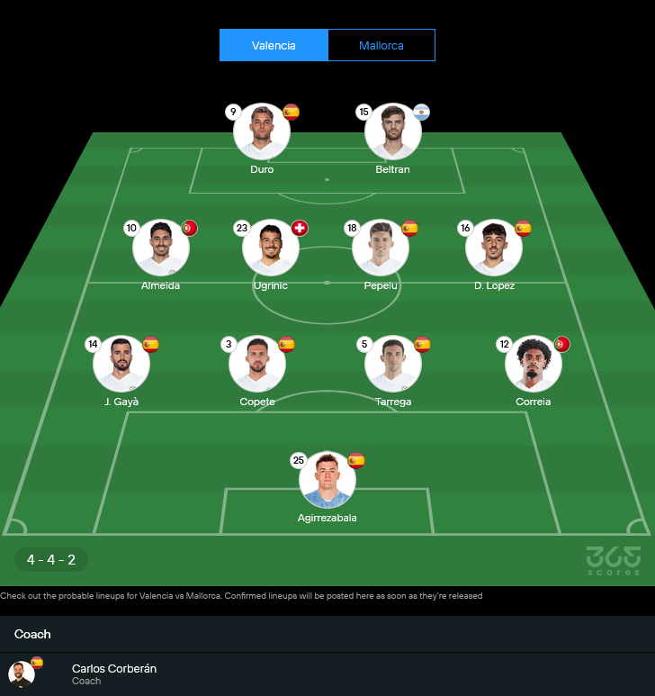 | 31/03/2025 | ลา ลีกา | บาเลนเซีย 1-0 มายอร์ก้า |