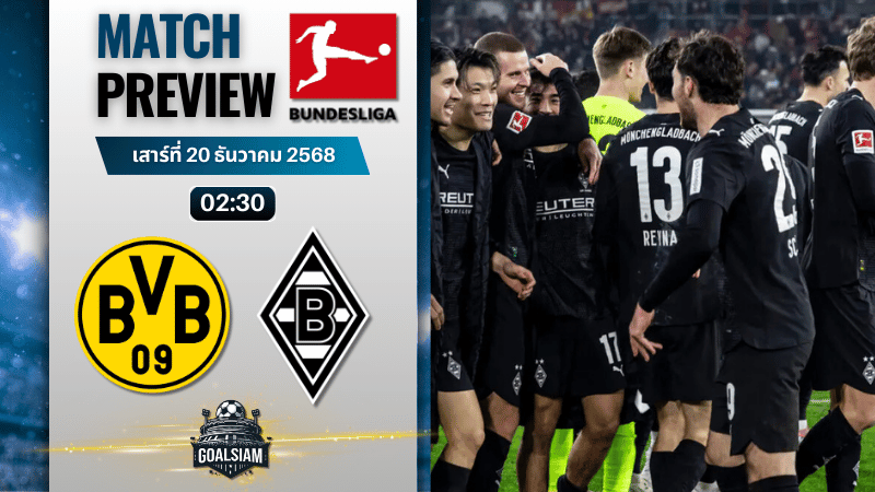 ดอร์ทมุนด์เปิดรังล่าขยี้กลัดบัค เสือเหลืองจะยิงขาดหรือโดนสิงห์หนุ่มหักโพย