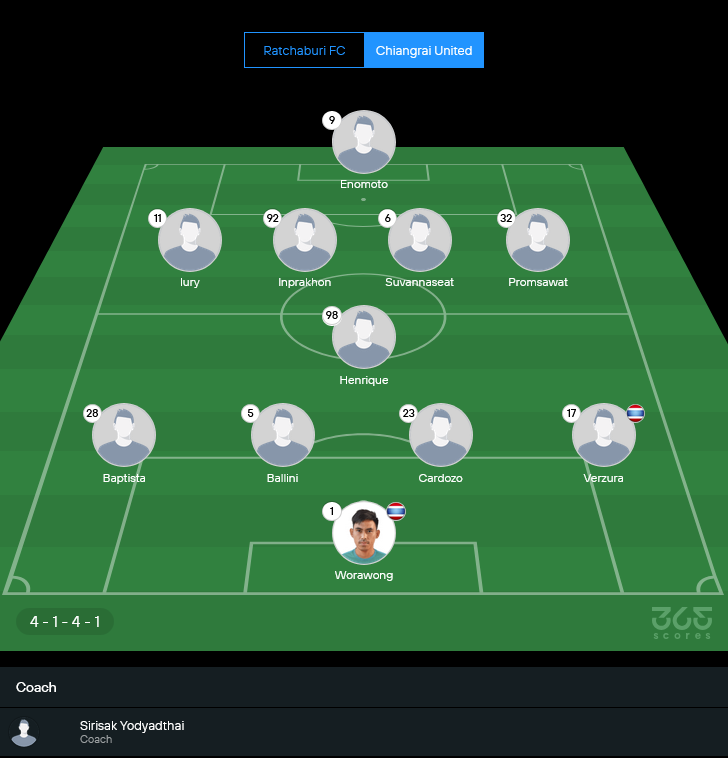 20/10/2024Premier Leagueราชบุรี เอฟซี 1–0 เชียงราย ยูไนเต็ด