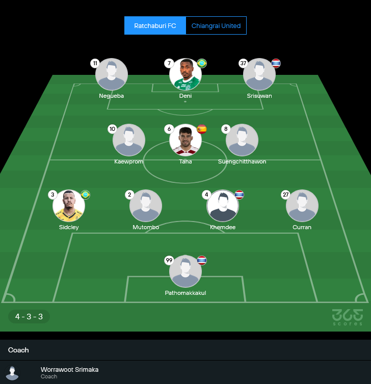 ราชบุรีของ วรวุธ ศรีมะฆะ น่าจะยึดระบบ 4-3-3 ตามสไตล์เน้นเพรสสูงและเล่นโต้กลับไว แดนกลางใช้สามตัวคุมจังหวะ เน้นดันฟูลแบ็กเติมเกมรุกริมเส้น ไม่มีรายงานตัวหลักเจ็บเพิ่ม ทำให้แนวรุกจัดเต็มทั้งบราซิเลียนและตัวไทยสายเทคนิค