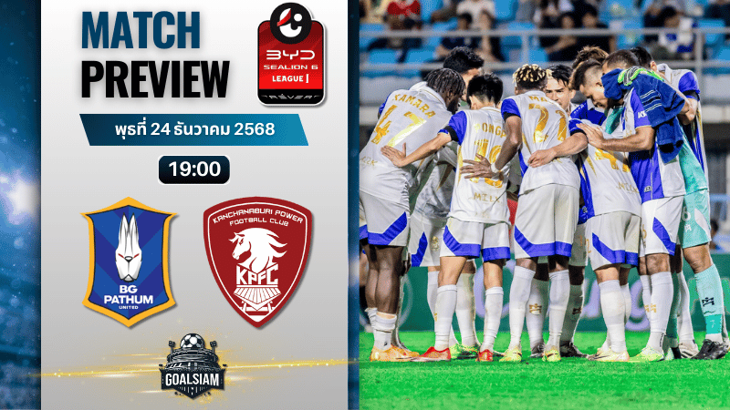 จากภาพฟอร์มล่าสุด บีจีเพิ่งกด เมืองทอง 3-0 แบบเหนือชั้น เกมรุกมีทั้ง โตโมยูกิ โดอิ, เอกนิษฐ์ ปัญญา และชนาธิป ปั่นเกมได้เข้าจังหวะ ส่วนพลังกาญจน์มาด้วยสไตล์เหนียวแน่น รัดกุม ผลงานเสมอบ่อย แต่เสียเปรียบเรื่องคุณภาพตัวผู้เล่นชัดเจน งานนี้ GOALSIAM มองว่าอารมณ์เกมจะเป็นแบบ บีจี บุกทั้งเกม พลังกาญจน์ยืนโซนลึก ตั้งรับอย่างเดียวแล้วรอจังหวะสวน ซึ่งถ้าโดนก่อนมีสิทธิ์ไหล
