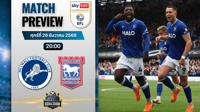 รูปเกมที่คาดคืออิปสวิชจะพยายามครองบอลบุกใส่ ใช้ความเนียนของฟิโลจีนกับนูเยซโจมตีแนวรับเจ้าถิ่น ส่วนมิลล์วอลล์จะเน้นรับแน่นกลางสนาม ตัดเกมดื้อๆ แล้วสวนกลับด้วยสปีดของเอ็มาคูและบัลโล่ ช็อตต่อช็อตใครพลาดน้อยกว่าก็รอด ถ้าดูทั้งฟอร์ม สถิติ และเรตปัจจุบันถือว่าเจ้าบ้านได้เปรียบเรื่องบรรยากาศพอสมควร ราคาเปิดให้รองในถิ่นแบบนี้ GOALSIAM มองว่าน่าเล่นฝั่งเจ้าบ้านมากกว่า