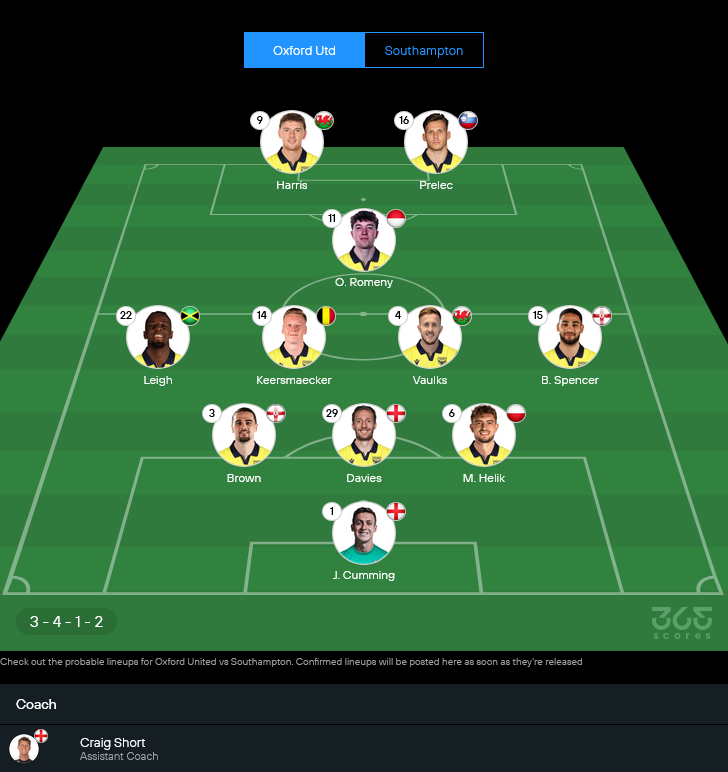 จากข้อมูลไลน์อัพล่าสุด อ็อกซ์ฟอร์ดน่าจะมาในระบบ 3-4-1-2 เน้นแนวรับสามเซ็นเตอร์แล้วปล่อยวิงแบ็กวิ่งขึ้นลงตลอดเกม
