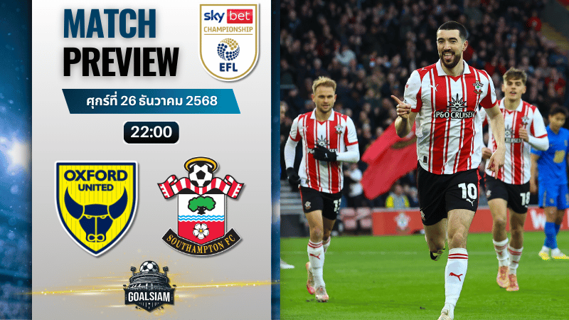 มองภาพรวมแบบสายโต๊ะบอล GOALSIAM ให้เซาแธมป์ตันเหนือกว่าอยู่พอสมควร ทั้งคุณภาพผู้เล่น ความต่อเนื่องของระบบ และแรงจูงใจลุ้นพื้นที่เพลย์ออฟ ขณะที่อ็อกซ์ฟอร์ดเพิ่งเปลี่ยนกุนซือ ฟอร์มยังไม่นิ่ง แถมความมั่นใจของนักเตะก็ดูดรอปลงอย่างเห็นได้ชัด