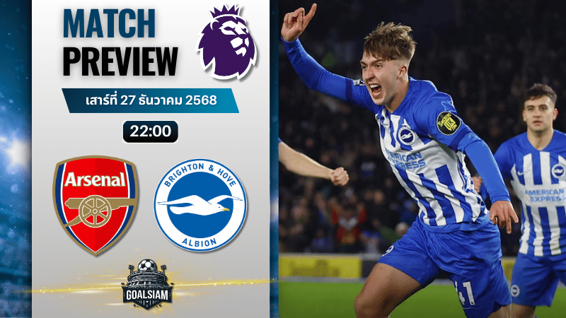 จากมุมมองสายลุยของ GOALSIAM ภาพรวมยังไงปืนใหญ่ก็เหนือกว่า ทั้งฟอร์มล่าสุด, สถิติในบ้าน และสภาพความมั่นใจของทีม ในเกมแบบนี้อาร์เตต้ารู้ดีว่าห้ามสะดุด เพราะคู่แข่งลุ้นแชมป์หายใจรดต้นคอ การเจอไบรท์ตันที่หลังบ้านยังรั่วให้เห็นบ่อย ถือว่าเป็นโอกาสทองในการย้ำแกร่งจ่าฝูง ตัวทีเด็ดอยู่ที่การเคลื่อนที่ของสามแนวรุกหน้าโกล โยเคเรสค้ำกลาง คอยพักบอลให้ทรอสซาร์ดกับซาก้าสอดเข้าไปจบสกอร์