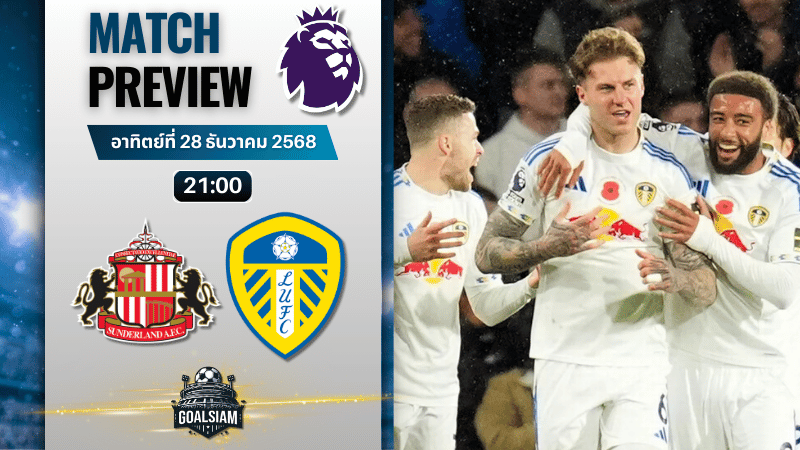 ดูบอลออนไลน์ พรีเมียร์ลีก ถ่ายทอดสด ซันเดอร์แลนด์ พบกับ ลีดส์ ยูไนเต็ด 28/12/68 – วิเคราะห์บอลวันนี้ บ้านผลบอล ราคาบอล ทรรศนะบอล ทีเด็ดบอลเต็ง
