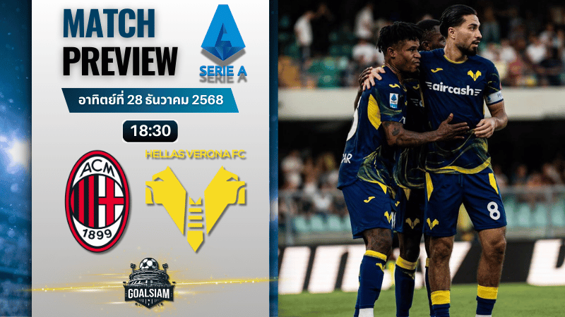 เปิดจอมาเกมนี้ บอกเลยว่าไม่ธรรมดา เพราะเป็นศึก เซเรีย อา ที่มีทั้งกลิ่นอายทีมลุ้นพื้นที่ยุโรปอย่าง เอซี มิลาน ปะทะทีมฟอร์มดิบอย่าง เวโรน่า ที่กำลังมั่นใจสุดๆ จากการชนะมา 2 นัดรวด งานนี้ใครที่กำลังมองหา ทีเด็ดบอล ไว้ลุ้นค่ำวันอาทิตย์ ต้องไม่พลาดคู่นี้เด็ดขาด บรรยากาศในซาน ซิโร่แบบเต็มความจุ แถมเจ้าบ้านกำลังมองสามแต้มเพื่อกดดันกลุ่มหัวตาราง ส่วนทีมเยือนมาแบบไม่มีอะไรจะเสีย เล่นดุดัน วิ่งสู้ฟัดทั้งเกมแน่นอน GOALSIAM ขอนั่งคุยแบบเพื่อนเซียนบอล บอกครบทั้งฟอร์ม สถิติ และมุมมองการลงทุนจัดเต็มเหมือนนั่งวิเคราะห์หน้าจอด้วยกัน