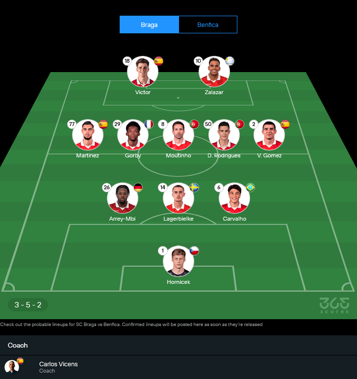 11 ตัวจริงที่คาดว่า บราก้า จะส่งลงสนาม
