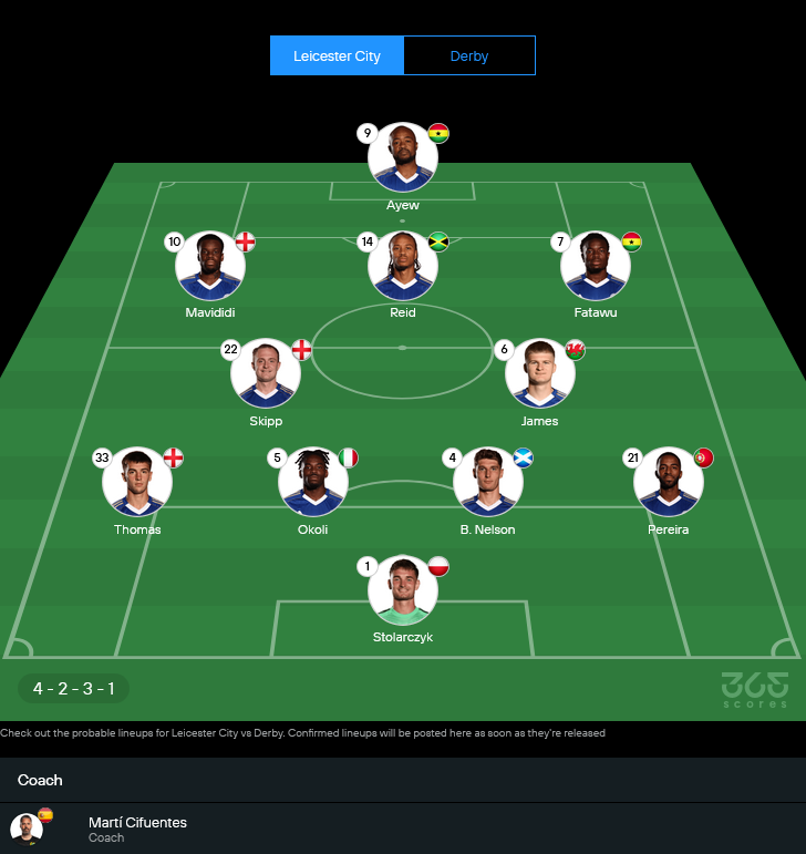 ฝั่งเจ้าบ้านของกุนซือชาวสเปน มาร์ตี้ ซิฟูเอนเตส กลุ่มตัวหลักยังอยู่กันครบ โครงสร้างทีมยังยึด 4-2-3-1 เป็นหลัก แดนกลางคือหัวใจสำคัญของการเซ็ตเกม ถ้าเครื่องติดตั้งแต่ต้นเกม ดาร์บี้มีเสียวแน่นอน ในเชิง วิเคราะห์บอล ดูแล้วเลสเตอร์น่าจะเน้นครองบอลบุกใส่เต็มสูบ หวังยิงประตูนำเร็วเพื่อกดดันทีมเยือน
