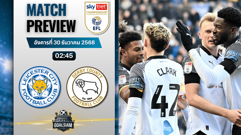แชมเปียนชิพเดือดที่คิงพาวเวอร์! เลสเตอร์ ซิตี้ เปิดรังล่าแกะเขาเหล็ก ดาร์บี้ เค้าท์ตี้ ลุ้นแต้มสำคัญท้ายปี