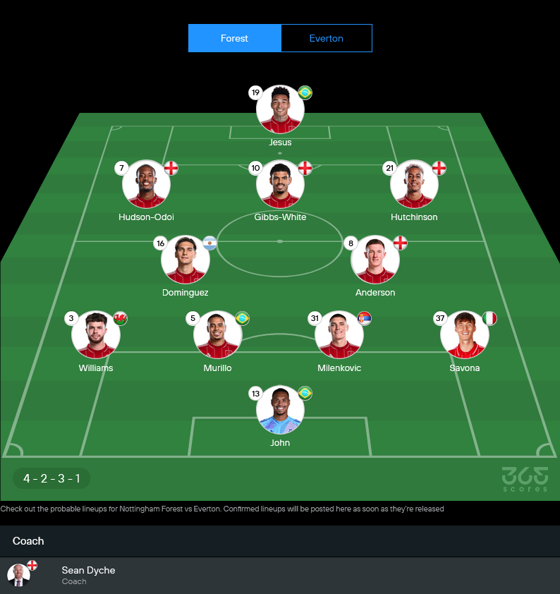 รูปแบบการเล่นคาดว่าจะยืน 4-2-3-1 ตามสไตล์ถนัดของกุนซือ ดายซ์ เน้นเกมรับแน่นก่อนแล้วค่อยหาจังหวะสวน ใช้ Murillo คุมเกมรับร่วมกับ Milenkovic มี Williams กับ Savona เติมเกมริมเส้น ด้านกลางสนาม Dominguez ยืนคู่ Elliot Anderson คอยตัดเกมและเชื่อมบอลไปถึงสามประสานตัวรุก Hutchinson – Gibbs-White – Hudson-Odoi ป้อนบอลให้ Jesus ยืนหน้าเป้า
