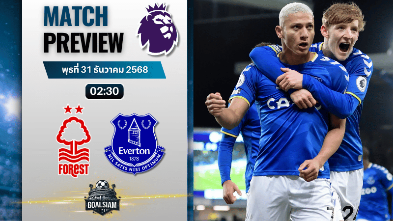 สกอร์ที่ GOALSIAM มองคือฟอเรสต์เบียดชนะ 2–1 เกมอาจเริ่มจากเจ้าบ้านกดดันใส่ก่อนแล้วได้ประตูออกนำ แต่ด้วยนิสัยชอบผ่อนเกมหลังนำ มีสิทธิ์โดนเอฟเวอร์ตันตีเสมอจากลูกตั้งเตะหรือจังหวะยิงไกล ทว่าในช่วงท้ายเกมพลังหนุ่มของแนวรุกอย่าง Hutchinson หรือ Hudson-Odoi น่าจะช่วยให้ฟอเรสต์หาเพิ่มอีกหนึ่งเม็ด เก็บสามแต้มล้ำค่าหนีโซนตกชั้นได้สำเร็จ